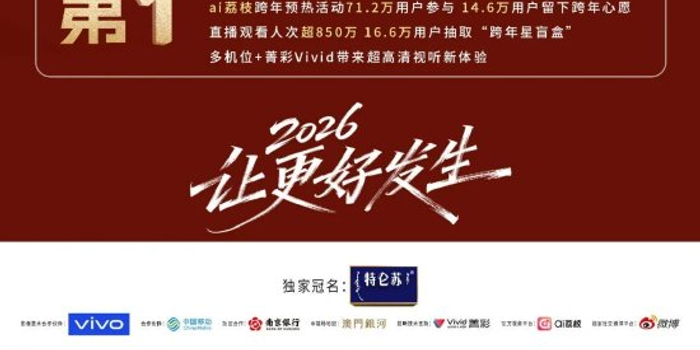 借助4K超高清多机位直播和菁彩Vivid音画技术,场外观众同样“身临其境”。不仅如此,晚会还发起了微博#接力2026#跨年活动、手写热搜许愿板、ai荔枝“跨年梦想号”活动等互动玩法,让观众从旁观者变为内容的共创者。