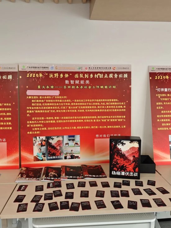 同时,展台上一系列的创意产出也成为焦点。以乡村特产杨桃为灵感开发的文创品,巧妙融合了地域特色与现代审美,广受好评;更有团队深入挖掘红色历史,通过文旅融合与教育,开发出以“杨梅潭伏击战”为背景的沉浸式红色剧本杀,让革命历史在青年一代的创意中焕发新生。这些从田野里“长出来”的文创作品,生动体现了大学生志愿者们将专业知识转化为解决实际问题的能力。