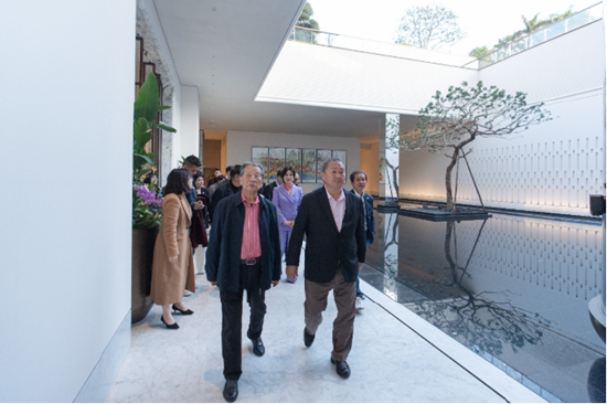 行程始于对张大墨、袁熙坤两位艺术家作品的深度品鉴。许钦松与方楚雄、许鸿飞等名家驻足细观,低声交流。作品中所呈现的“艺术照见未来”主题,与香江1号空间本身所承载的理念不谋而合。这里没有冰冷的白墙与隔离线,艺术被置于一个流动的生活场景中,激发着观者关于传承与创新、传统与未来的思考。