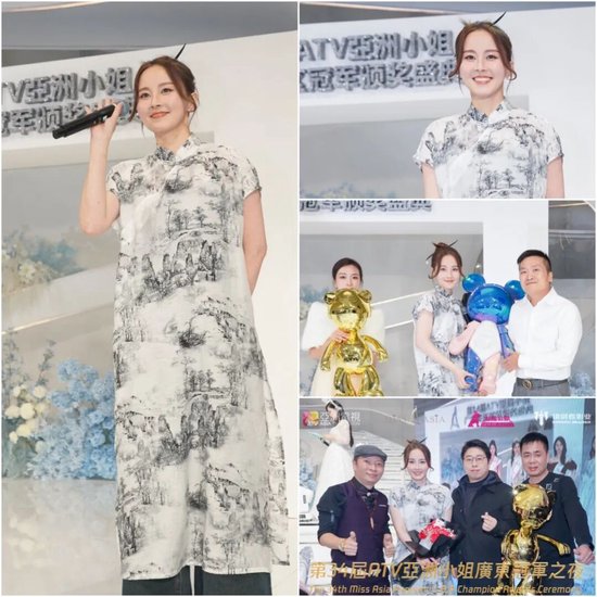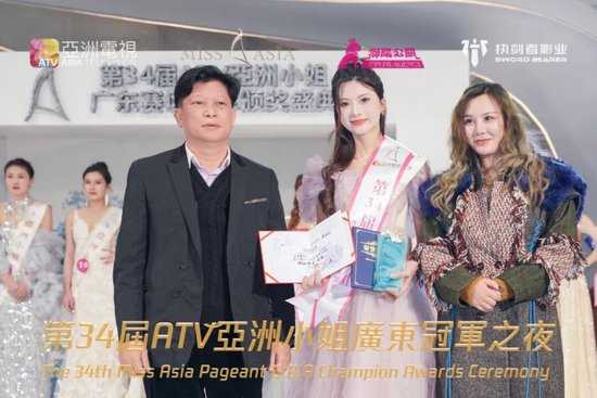 亞姐培训导师(左)刘静及时尚博主官泽学长为5号姜文杰颁发【2023亞洲小姐广州赛区殿军】第二轮颁发的是《ATV亚洲小姐广东赛区》的冠军奖项——身高177cm的哈尔滨佳丽10号李琪雯,凭籍优越外形和舞台表现力,最终不孚众望,登上“第34届ATV亞洲小姐广东总决赛冠军”的宝座,获赠价值10万元的卡碧梵名表等奖品!全场掌声雷动,她的获奖感言可谓感人肺腑:连疫情三年都能熬得过,我相信每一位观众都是生活中的冠军!