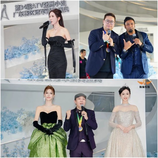 亞洲电视大中华区主席 邢伟军(左)、广东赛区副主席 周海朋(右上)、广州赛区荣誉主席 杨中源(右下)轮番为来宾致辞,祝2023年度ATV亞洲小姐广东(广州)总决赛圆满成功!(嘉宾排名不分先后)抖音百万观众收看亞姐总决赛!
