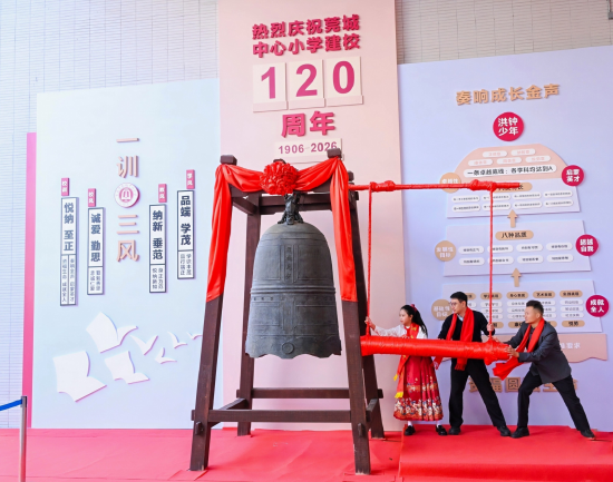 活动期间,课堂还通过情景剧、音诗画、诗朗诵等丰富形式,生动诠释“至正”精神,让思政教育入脑入心。在此氛围中,领导嘉宾与新晋洪钟少年及家长共同敲响洪钟120下,以声声钟鸣献礼建校120周年,进一步营造 “传承薪火、争当至正少年” 的浓厚氛围。