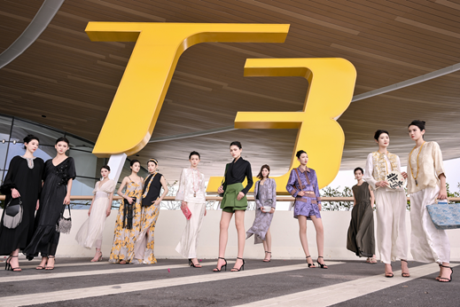 本次T3时尚大秀作为广州“英雄花开英雄城”系列活动的时尚标杆之作,得到多部门指导支持,当晚,市委宣传部、市委统战部、市商务局、市文旅局、市工信局、白云区委等各级相关部门领导,与特邀嘉宾共同出席活动。活动汇聚全国两会代表、各行业商协会负责人、文化文艺界名人、优秀企业及知名品牌代表、新闻媒体记者等共300位嘉宾现场观礼,同步触达白云机场当日50000+航旅人群,成为广州面向全球展示商贸活力与时尚底蕴的重要窗口。越秀商管旗下白马携设计谷、其用、线影、FFDIKADI四大原创女装品牌,联合中港蒽爱、上人上品等优质箱包品牌完成新品联合首发,以“服装+皮具”全穿搭生态,演绎湾区原创设计实力,向世界递出“广州设计、湾区制造”的时尚名片,助力广货精品借助空港辐射力实现全球亮相。