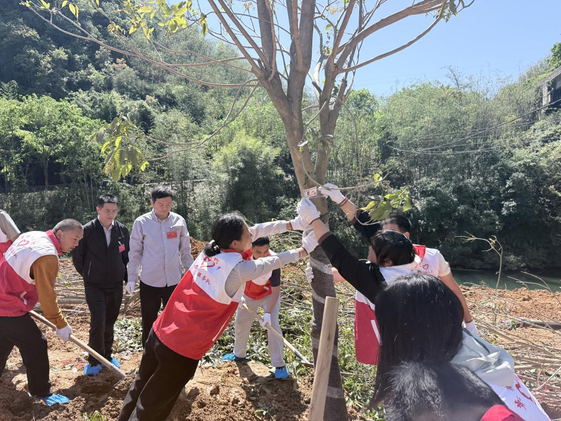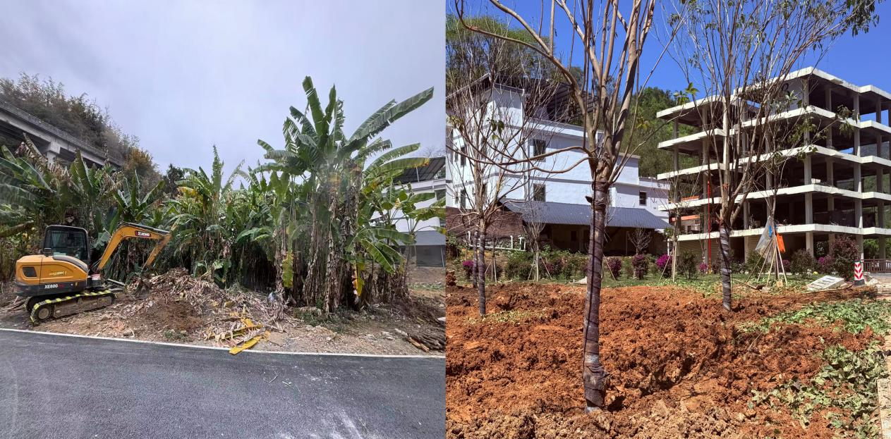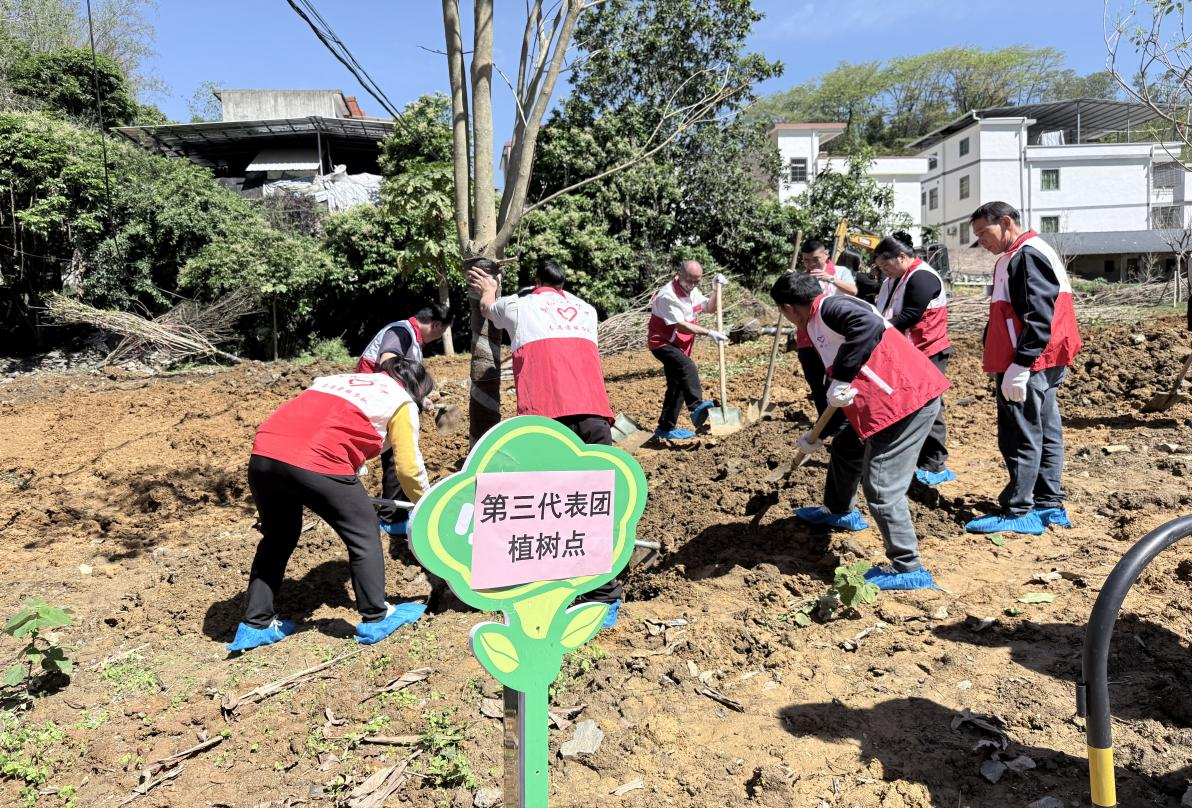 为破解乡村绿化“钱少、地散、管护难”的普遍痛点,波罗镇创新推出“一元认领一棵树”机制,人大代表带头以一元公益价认种认捐树苗,4月1日,50名人大代表齐聚西岸公园,亲手种下50棵紫花风铃,昔日杂草丛生、破败泥砖房林立、旧电线杂乱交错的闲置荒地,就此迎来蝶变,正式开启“代表履职+生态绿化”的全新实践。