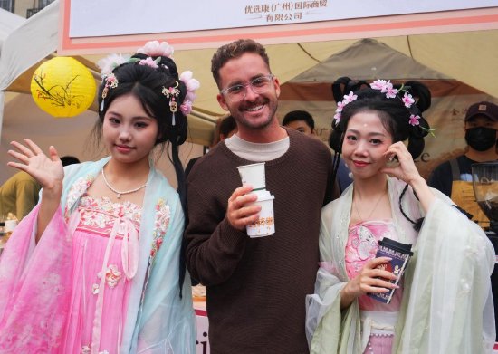 尤为引人注目的是,华服巡游队伍手持特色主题咖啡杯,优雅穿行于沙面中央大街与静谧庭院之间。在德国领事馆旧址、汇丰银行旧址、法国东方汇理银行旧址等百年文物建筑前,身着各式汉服的青年们驻足流连,东方风雅的含蓄之美与欧陆建筑的典雅线条相映成趣,构成一幅幅穿越感十足的生动画卷。丰富的汉服妆造体验、精巧的岭南非遗手作、趣味“咖啡护照”集章打卡,以及“百年沙面 咖韵国风”自媒体传播大赛等系列活动同步展开,让每一位市民游客都在咖啡的醇香中,沉浸式参与这场历史与潮流、传统与时尚的深度对话。
