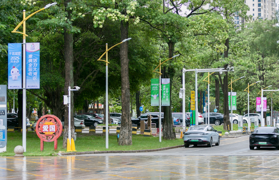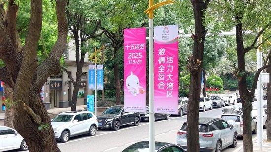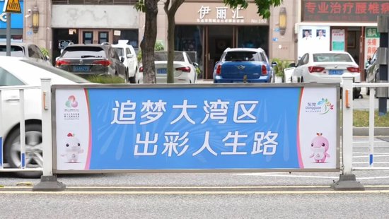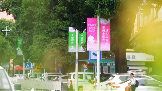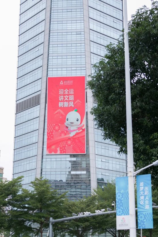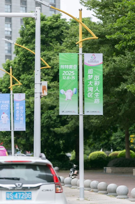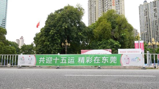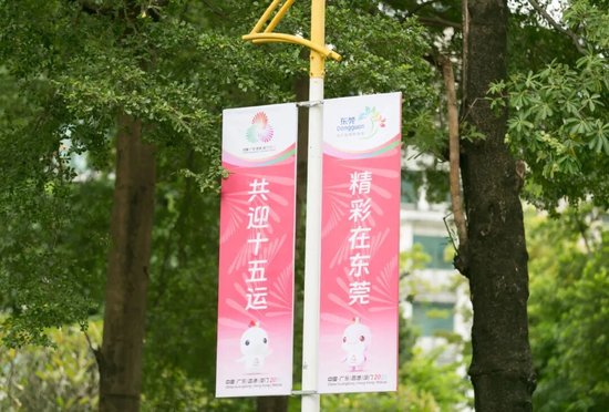 从商圈广场到公园绿道,从城市干道到社区院落,“激情全运会 活力大湾区”“追梦大湾区 出彩人生路”等宣传横幅迎风招展,串联起一道道流动的风景。莞太路、旗峰路、体育路、东江大道、可园北路、东纵路及市民广场周边等主干道上,“喜迎十五运会”主题灯杆旗格外醒目。标语之下,车流如织,赛事氛围日渐升温。