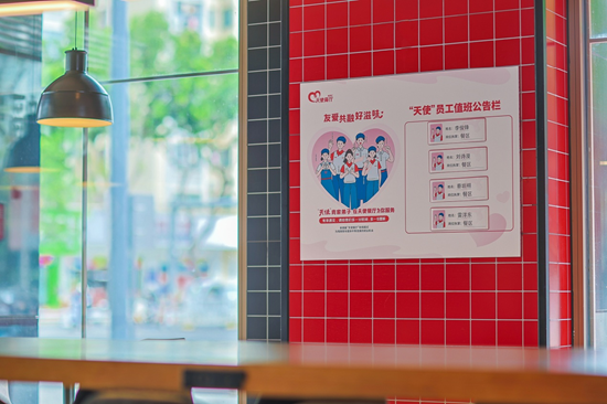 走进餐厅,肯德基特别设置了“天使”员工值班公告栏展示专区,通过一张张笑脸以及“天使”员工岗位介绍传递正能量。鼓励残障群体建立自立、自信的人生信条,挖掘自身潜能,以更优质的服务融入社会、回馈社会,向公众传递善意,这正是肯德基打造天使餐厅的意义所在。