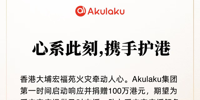 关注针对近日香港大埔宏福苑发生的火灾事件,Akulaku集团高度重视,第一时间启动应急响应机制,并宣布捐赠港币100万元,用于协助受灾家庭获得及时援助,缓解其面临的紧急困难。