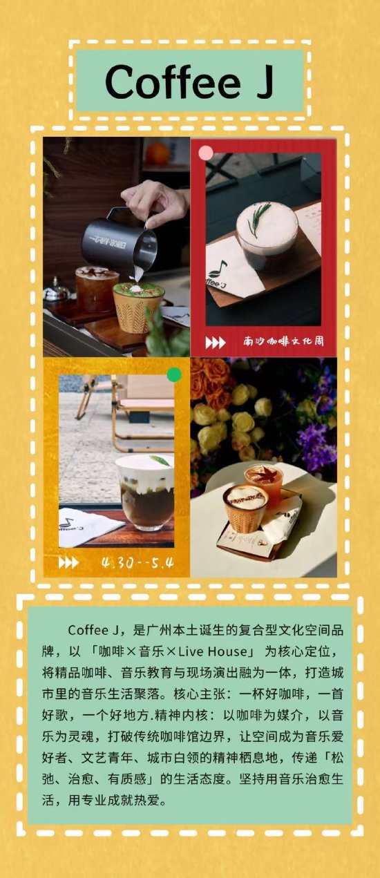 (排名不分先后)磨咖啡、Ylcoffee、MOMENT COFFEE、盐Coffee、半山咖啡、沿途咖啡、J+精品咖啡、步止小麦Pace on Mind、ACE COFFEE、Triple cafe、山下咖啡、粤k茶咖、塔头咖啡、咖啡很忙、Coffee J、落日咖啡等。