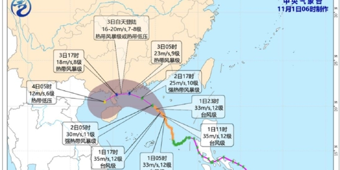 中央气象台预计,“尼格”11月1日白天开始在南海北部海域转向偏西方向移动,向广东中西部到海南岛东部一带沿海靠近,强度逐渐减弱。