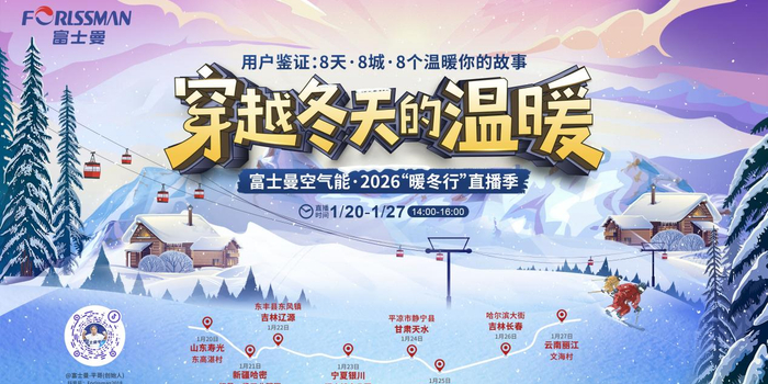作为富士曼2026年度符号性活动,此次活动通过总部与用户点位连线直播的方式,以一场跨越12000公里的温暖接力,讲述了8天8城8个温暖的故事,成为空气能热泵行业值得关注的一次品牌事件营销。