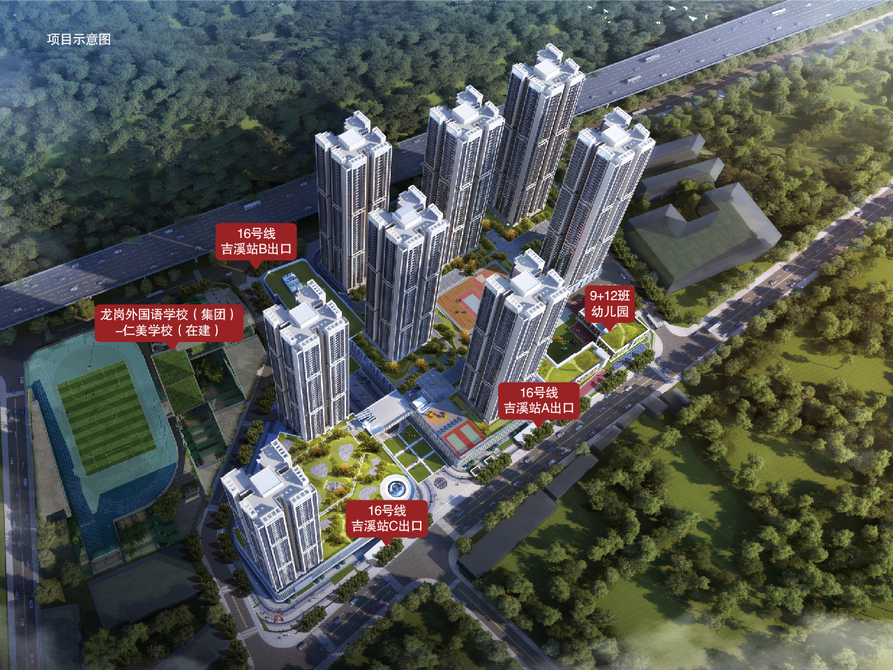 项目位于地铁16号线吉溪站正上方,属于纯正地铁上盖物业,居民步行即可直达地铁站,快速通达龙岗中心城、坪山中心区等核心区域,无缝换乘地铁3号线、14号线,极大缩短通勤时间,畅享深圳全域便捷交通网络。