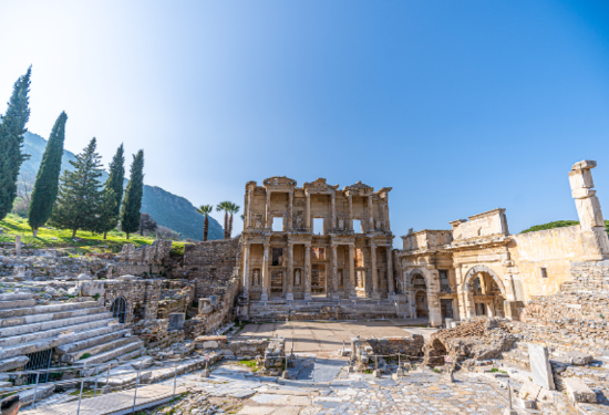 伊兹密尔脚下的土地,深埋着历史的回响。这里是古希腊诗人荷马的故乡,史诗宏大画卷中的背景,就在士麦那的断壁残垣间,荷马吟唱英雄传说的余音仿佛至今仍回荡此间。在郊外,以弗所这座保存近乎完好的古罗马巨城,正以大理石铺就的街道、宏伟的塞尔苏斯图书馆和万人剧场,无声诉说着千年前的繁华与智慧荣光。从《荷马史诗》到《以弗所书》,漫步在伊兹密尔,历史似是从书上活了过来。