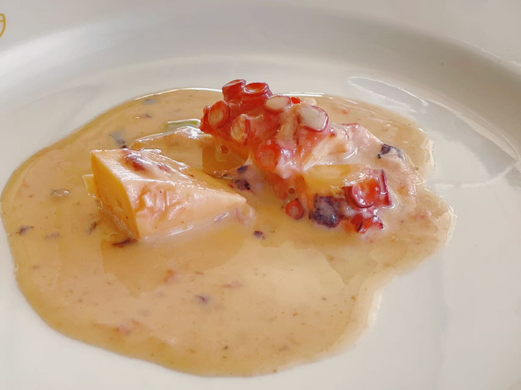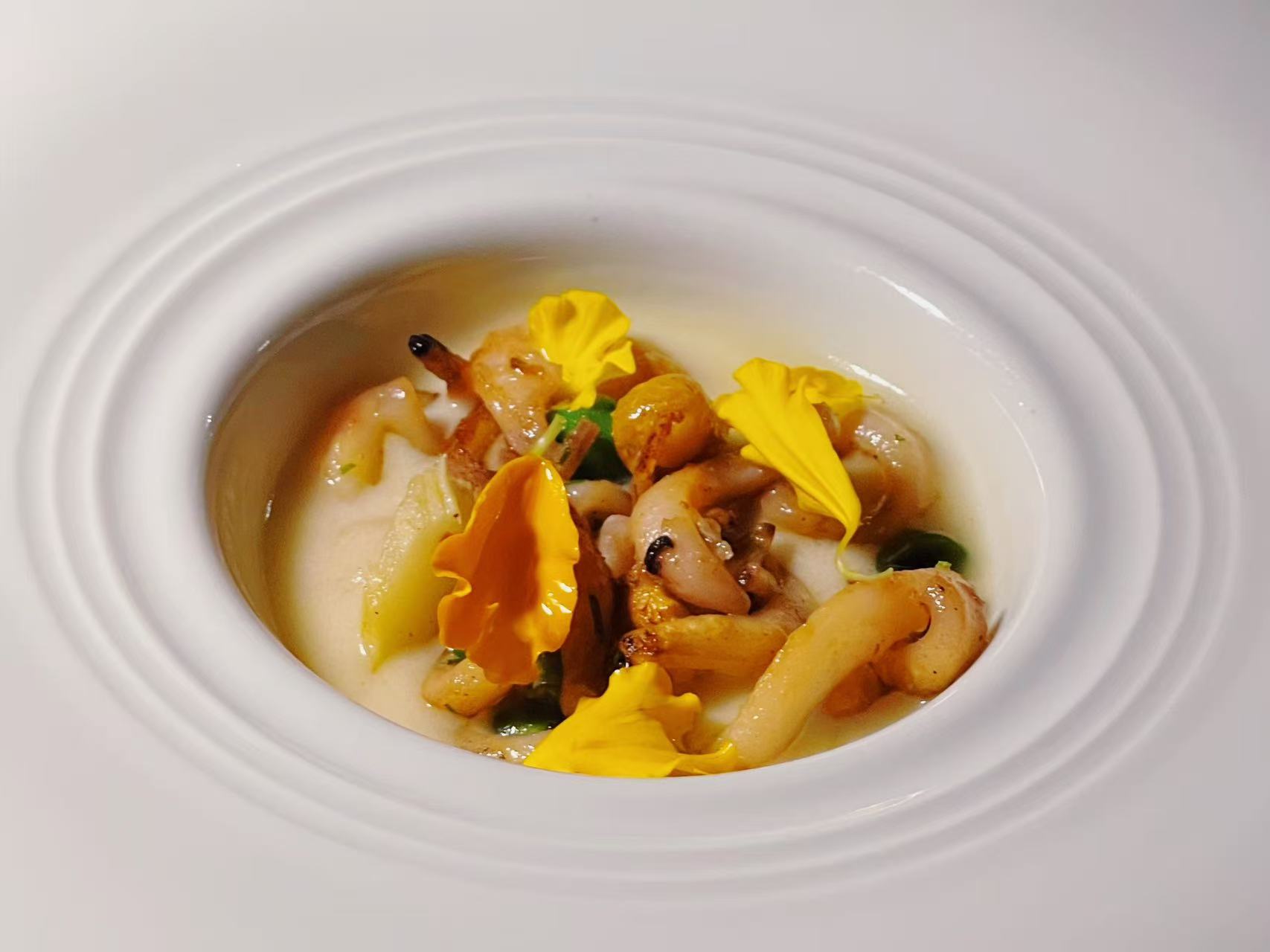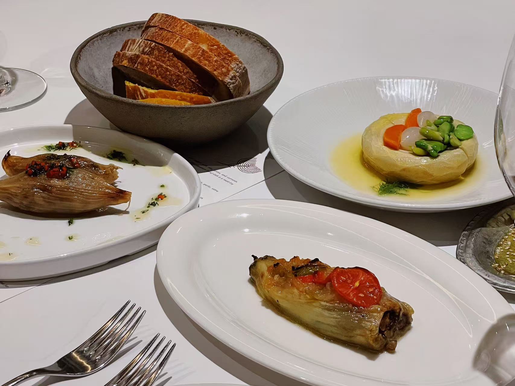 驱车来到郊野的OD Urla餐厅,穿过一片银绿摇曳的橄榄树林,眼前豁然开朗——一座通透的玻璃餐厅静静矗立于自然之中。左侧是开放式厨房,空气中弥漫着食物烹煮的香气;右侧是长餐桌,宾客们觥筹交错,与流转的光影交织出一幅热络生动的画面。乌拉奥泽克村蓝尾虾配、切什梅柠檬……菜单上不乏伊兹密尔的地名,皆因餐厅坚持“从农场到餐桌”和“不时不食”理念,选用本地和自家花园食材,菜单随季节变化。主理人塞泽纳尔表示,OD Urla菜单上的食谱是对爱琴海所有隐藏瑰宝的致敬,他希望将爱琴海美食文化推向世界舞台。最让人印象深刻的是“木火炙烤章鱼配洋蓟炖青豆”,被誉为“蔬菜之王”的洋蓟是伊兹密尔和希腊共有的菜式,一般加入橄榄油炖煮后作为冷盘食用,如今,这道菜经土耳其主厨之手焕发新生,甜味更隐,香味更锐,恰似两座隔海相望的古城,血脉相连,却各自成诗。