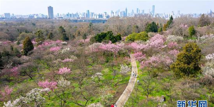 关注这是3月2日拍摄的南京梅花山(无人机照片)。 近日,随着天气转暖,南京梅花山的梅花竞相盛开,迎来了最佳观赏期。